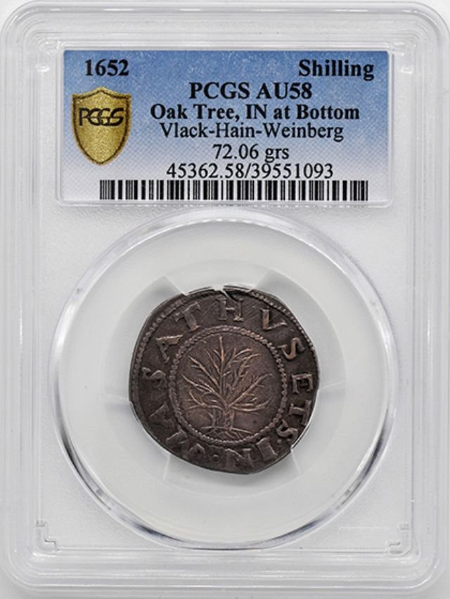 1652 OAK TREE SHILLING, ANDO VARIETY MS61 -